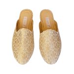 These babouches are a stunning fusion of craftsmanship and artistic expression. Crafted from brocade fabric. The delicate gold shimmer against the rich fabric, highlighting the meticulous handiwork of skilled artisans. Lined with light tan material for comfort, these babouches are more than footwear—they are a celebration of heritage and creativity, effortlessly blending tradition with contemporary artistry.