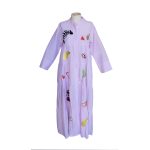 This dress is a striking fusion of artistry and organic inspiration, featuring meticulously embroidered fruits and vegetables across its fabric. The embroidery brings vibrant produce to life— tomatoes , olives, and other natural elements—stitched with rich, dynamic colors that contrast beautifully against the base material. The arrangement of these motifs gives the dress a unique sense of abundance and prosperity, making it a wearable celebration of nature’s bounty. The flowing silhouette enhances the movement of the embroidered details, while subtle embellishments add an extra touch of refinement. This piece is not only a testament to skilled craftsmanship but also a meaningful expression of culture and symbolism.