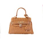 Hand Bag in blue “straw” fabrics . The bag is fully lined in cotton fabrics with internal pocket and it comes with a protection bag.