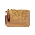 Slim design with zipped top with leather fringes and hand strap.  The pouch is fully lined in cotton fabric with an internal pocket and it comes with a protection bag. 30X22