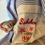 Set abaya dress in linen fabric and embroidered on the theme “Sabaho” with a caftan on the top in cotton striped fabric. Free Size