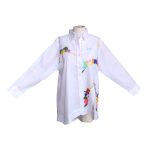 This shirt definitely stands out with its intricate and lively embroidery, making it a distinctive piece perfect for adding a touch of artistry to any wardrobe!